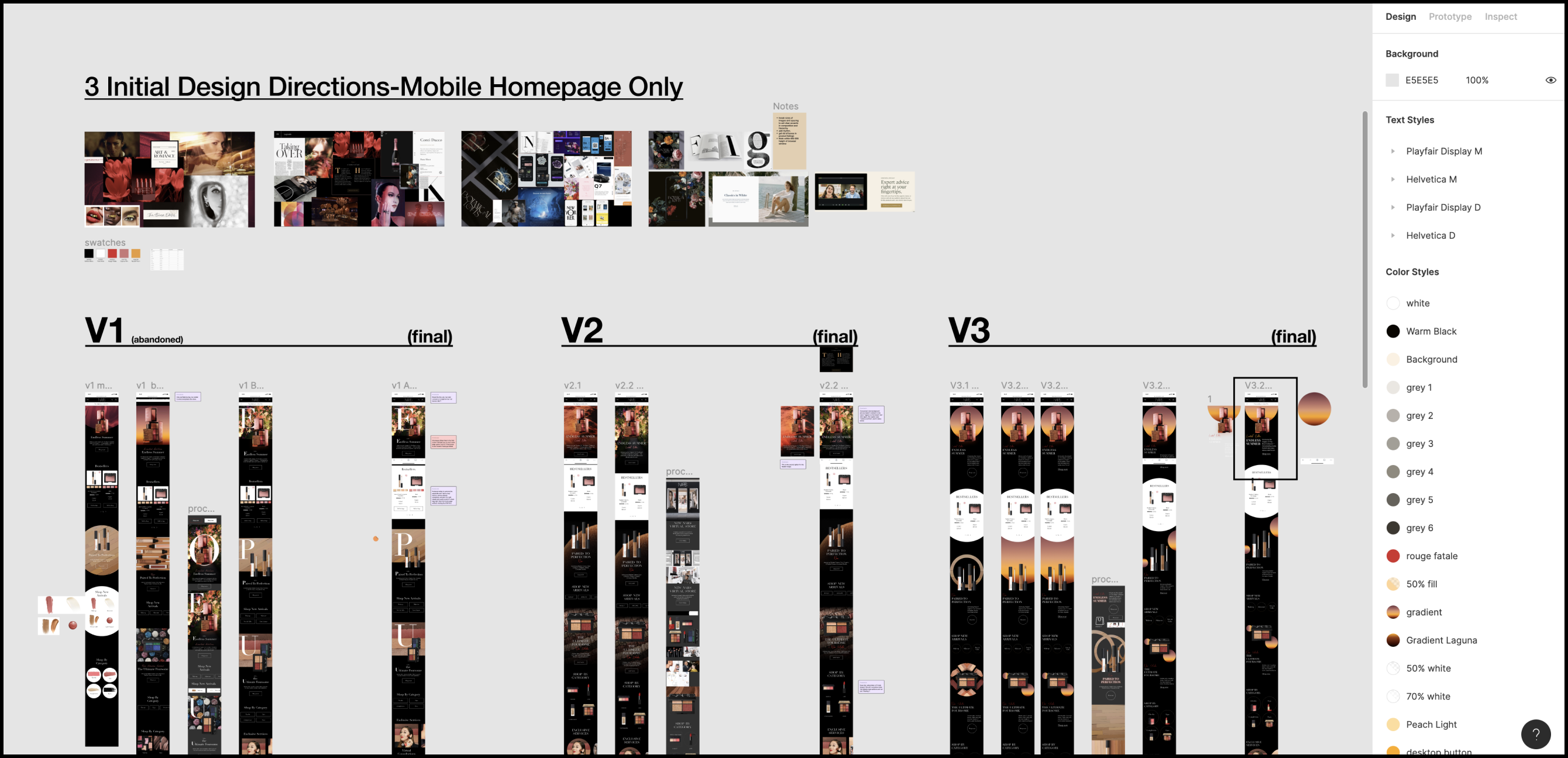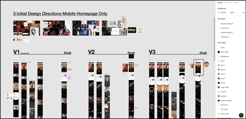 For Shin’s students, everything from class exercises to final presentations live in Figma. At the top of the semester, students receive a set of files, each containing pages of named templates for the various activities in the course. While each page focuses around a purposeful and structured template, the infinite canvas around it leaves space open for sketches, ideas, and quick iterations. This makes it easy for students to turn a single Figma file into a design journal—one page might hold a research activity and a summary, while the next contains wireframes. Shin calls each of her students’ Figma files a “creative journey.”