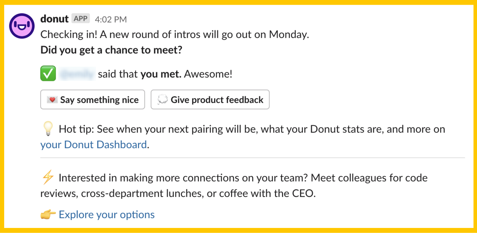 Our conversations on Slack have become even more upbeat and emoji-filled than usual. Every morning, someone from the team pings in our company-wide channel with a prompt to kick off the day on a positive note. Most recently, we were all invited to share the shows we’re planning to binge-watch over the weekend.