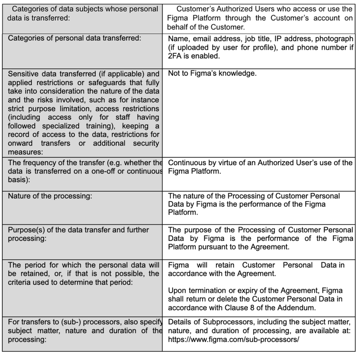 This Exhibit C forms part of the Addendum and only applies to Figma’s Processing of Customer Personal Data that is subject to this Addendum. All capitalized terms that are not expressly defined in this Exhibit C will have the meanings given to them in the Addendum or the Agreement.