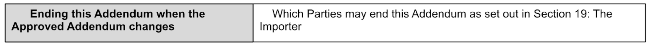 Table 4: Ending this Addendum when the Approved Addendum Changes